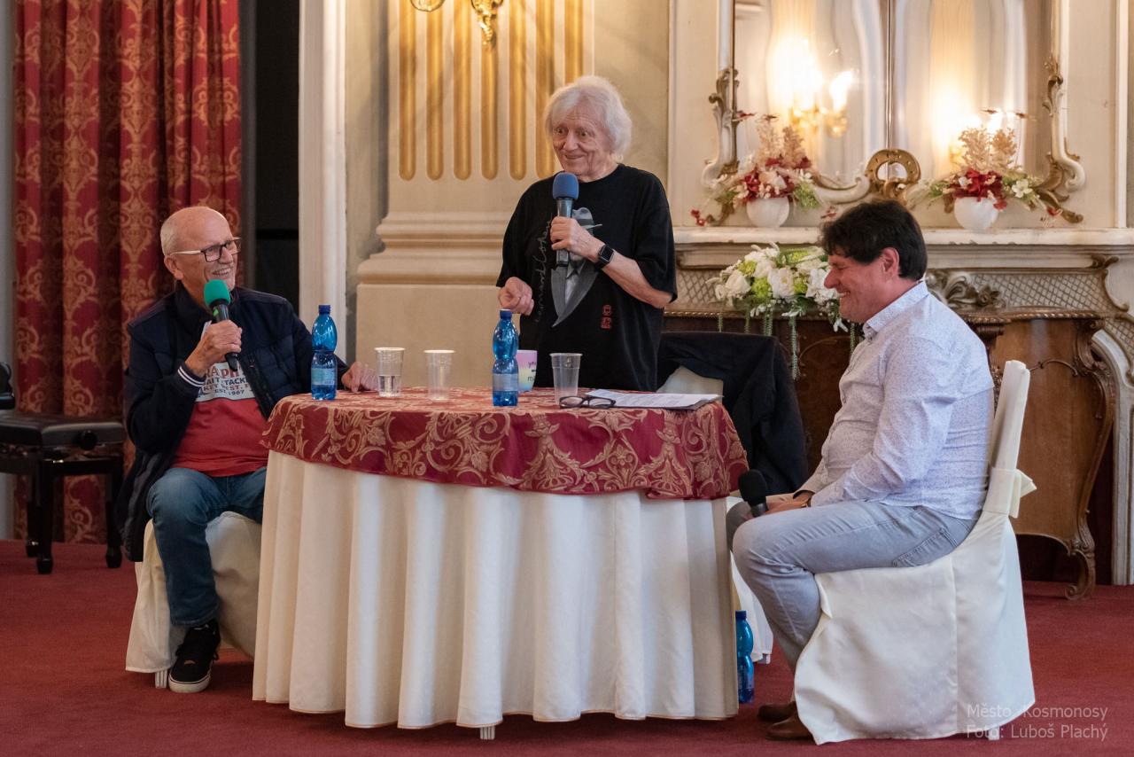 V rámci besed "Za zrcadlem" Pavla Petra přijali pozvání do zrcadlového sálu zámku Město Kosmonosy legendy naší populární hudby bratři - Václav a Jan Neckářovi. Příjemný večer s lidmi, co toho strašně moc dokázali. Velké poděkování patří p. Pavlu Petrovi za pozvání vzácných hostů.
