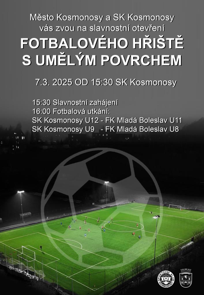 Město Kosmonosy a SK Kosmonosy si vás dovolují pozvat na slavnostní otevření fotbalového hřiště s umělým povrchem.