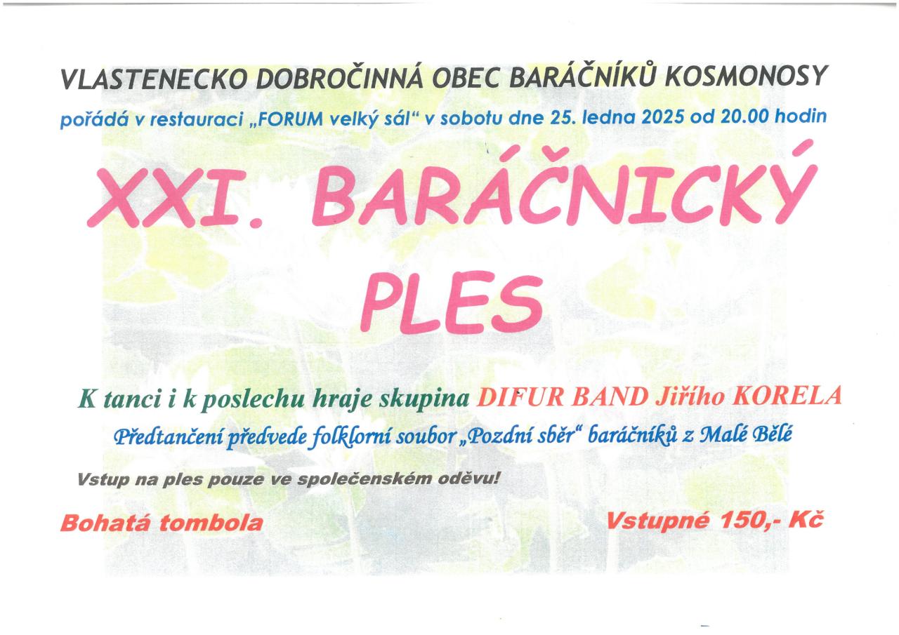Baráčnický ples 25. ledna 2025 od 20:00 hodin v restauraci FORUM.