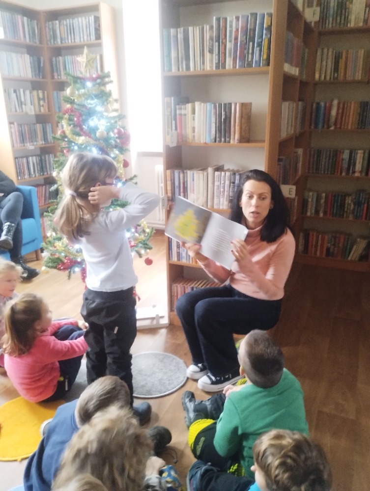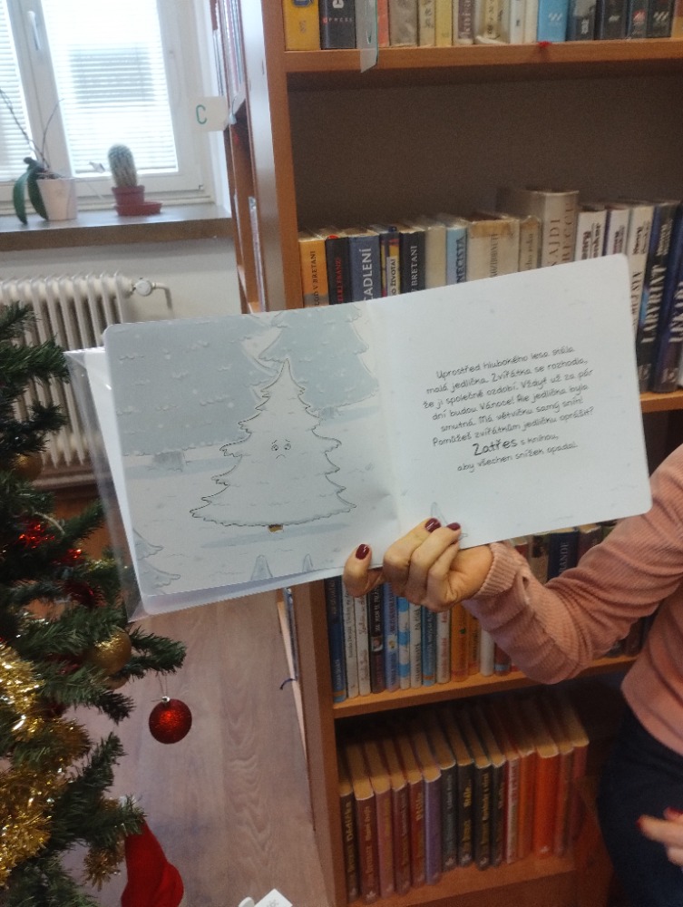 I když venku není žádný sníh, náš vánoční příběh ho byl plný. Holčičky a kluci z Kopretinek se pohodlně usadili vedle vánočního stromečku a poslední letošní společné čtení mohlo začít. Dva skřítci nám na saních přivezli vánoční knihu zasypanou sněhem, provoněnou vánočním cukrovím a na konci čekal rozzářený vánoční stromeček – ten se nerozzářil jen v knize, ale i u nás v knihovně. Děkuji za návštěvu dětem, paní učitelce Míše a Nikole.