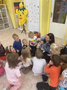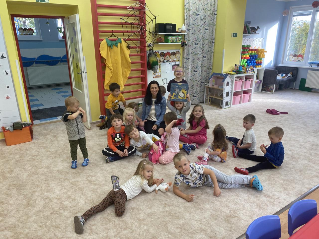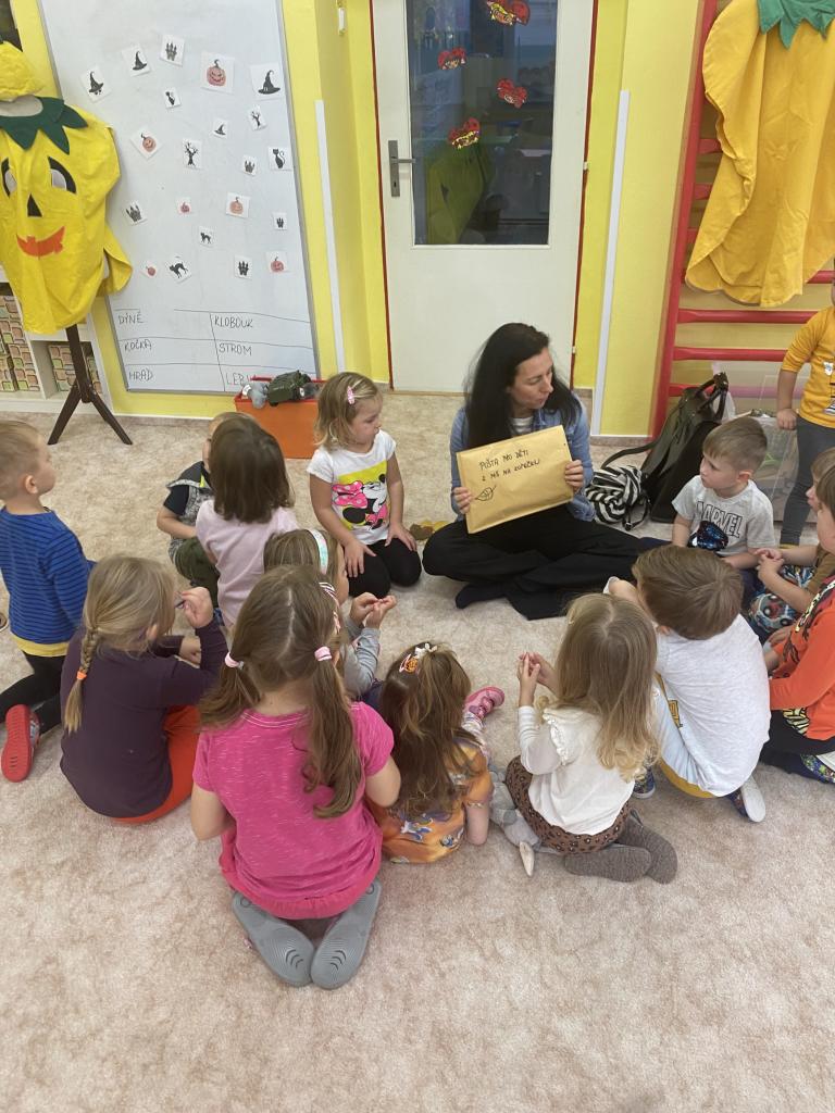 Bertík ale nebyl jediný doprovod který jsem měla. V tašce na svůj čas čekala i sovička Rozárka a její psaní pro děti. Nejprve jsme si přečetli proč Bertík nemohl klidně spát. Povídali jsme si o knížce dokud se svým zahoukáním nepřihlásila o slovo Rozárka. Ta přinesla dětem velkou obálku. V něm se ukrýval dopis, vlastně pozvánka do knihovny. Rozárka si pro děti připravila malé podzimní tvoření. Pozvání holky a kluci s nadšením přijali a já se společně s Rozárkou budu těšit na jejich návštěvu. Děkuji ředitelce Evě Jirků, Anetě Pechancová a Adéle Gillarová Ryšlavé.