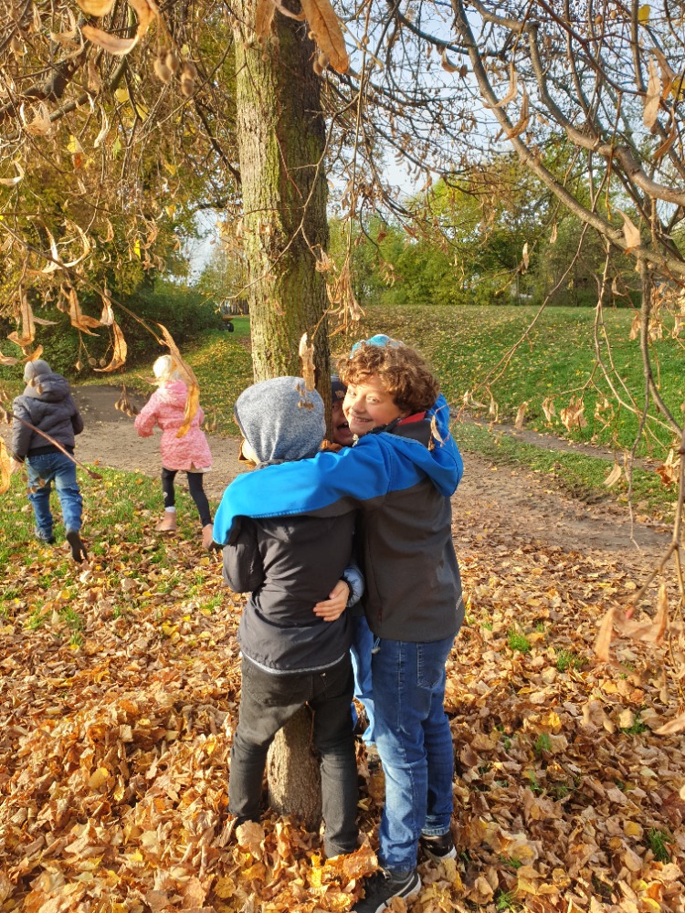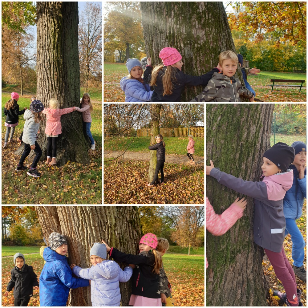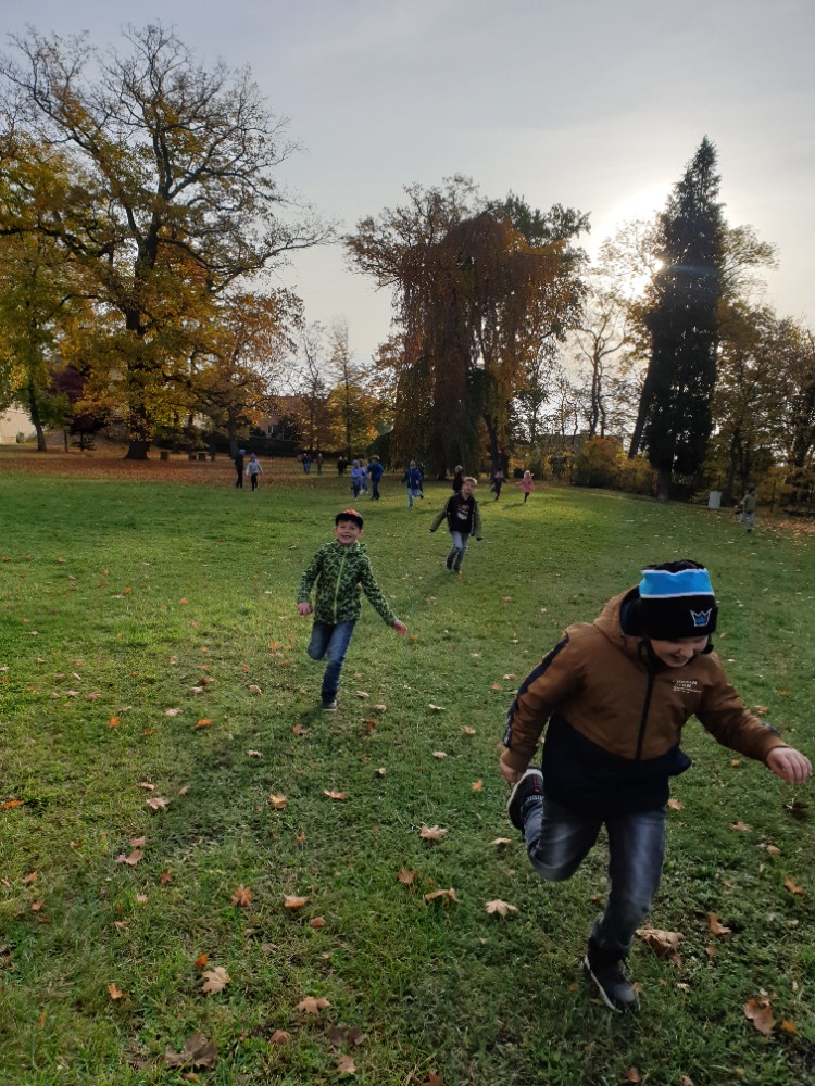 Počasí bylo hřejivé a slunečné, listy barevné, občas pofukovalo. Krásně nám to s druháky podpořilo naše podzimní povídání. Vyprávění hrálo všemi barvami – hlavně těmi podzimními, jak jinak. Červená, oranžová, hnědá….kde se berou? Strom, listy…to jsou hlavní ukazatele pro naše oči, že je léto definitivně pryč a blíž máme k zimě. Proč se příroda mění, listí padá… jak vypadá list, co se v něm při změně barvy odehrává – kdo za to může? Snad malíř nebo kouzelník? Ba ne, příroda, ta to umí zařídit i bez kouzel. Chlorofyl, fotosyntéza, letokruhy, čepel, řapík, žilnatina, vodovodní potrubí (ano čtete správě 🙂 ), to vše jsme s druháky probrali. A pro pobavení jsme si řekli kdy strom tloustne, jak chodí na záchod, který strom se nesnese s ostatními. Povídali jsme si i o podzimních aktivitách. Někdo rád procházky v dešti a blátě, jiný pohodičku pod dekou s hrníčkem kakaa, na podzim se toho dá dělat spousta a všechno holky a kluky z 2.A a 2.B baví! Abychom využili sluníčko, které se na nás po celou dobu vyprávění dívalo za oknem, vyrazili jsme do parku. Najít oříšky pro veverku, písmenka, ze kterých jsme složili nápis PODZIM a zkoušeli jsme obejmout stromy. Na ty mladší, s hubeným kmenem, kolikrát stačila jedna náruč, ale ty velké…tam bylo třeba pomoci několika kamarádů. Děkuji všem za krásné povídání, skvělé otázky a reakce. Knihy, ze kterých jsem čerpala jsem dětem, na jejich přání, nechala na nějakou dobu ve škole. Ať se každý může podívat na věci, které jsme nestihli probrat spolu. Děkuji třídním Lence Eichlerové a Janě Kronusové. Budu se těšit na další setkání, tentokrát už vánočně laděné.