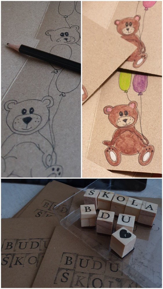 Proto mě napadlo, že jim vyrobím přáníčka s medvídkem a připíšu vzkaz. Snad se budou medvíďatům líbit. Jedna fotka z večerního tvoření… Výsledné přáníčko uvidí až předškoláci 🙂