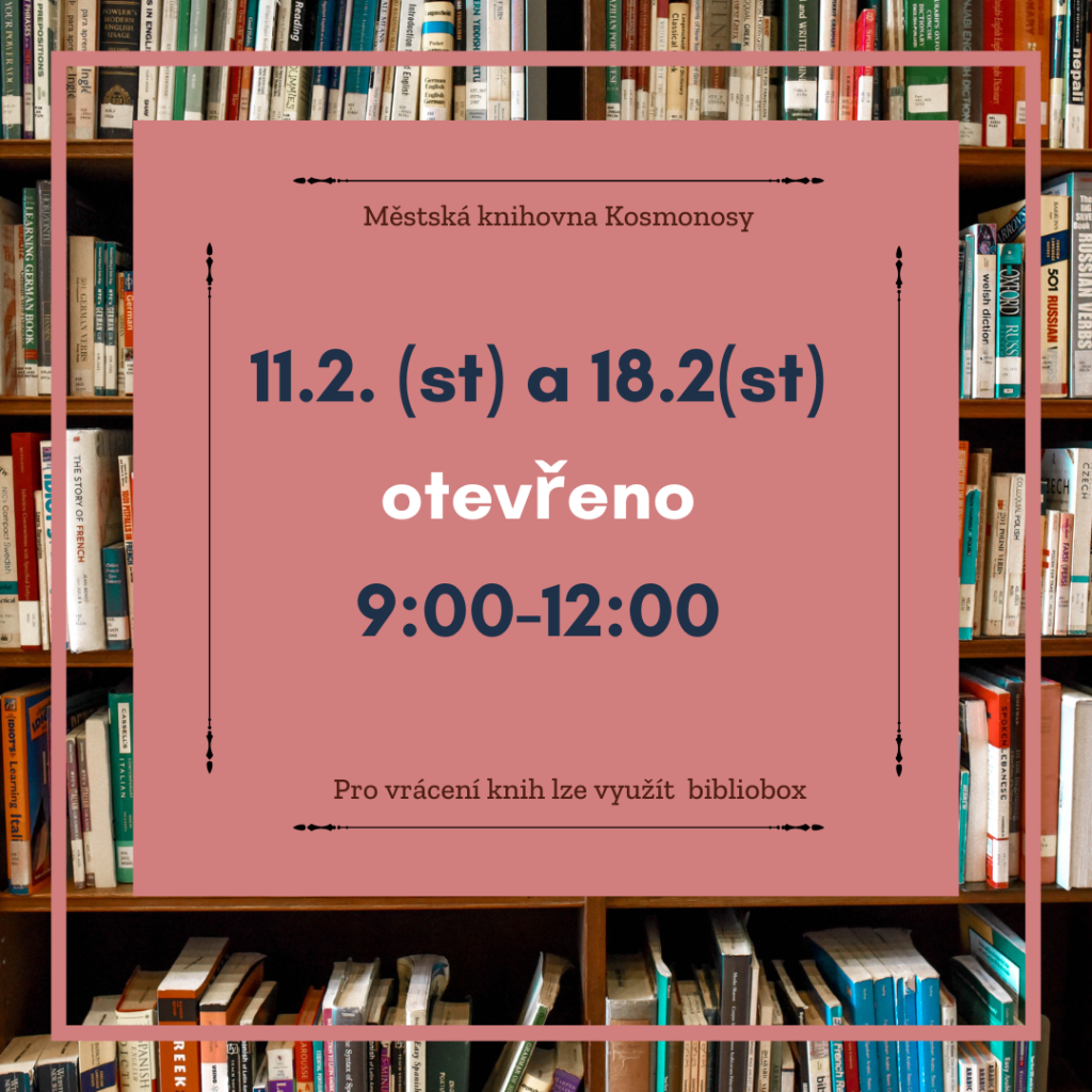 jak již bylo avizováno v SMS zprávě - upřesňuji změnu výpůjční doby následující dny. Děkuji za pochopení.